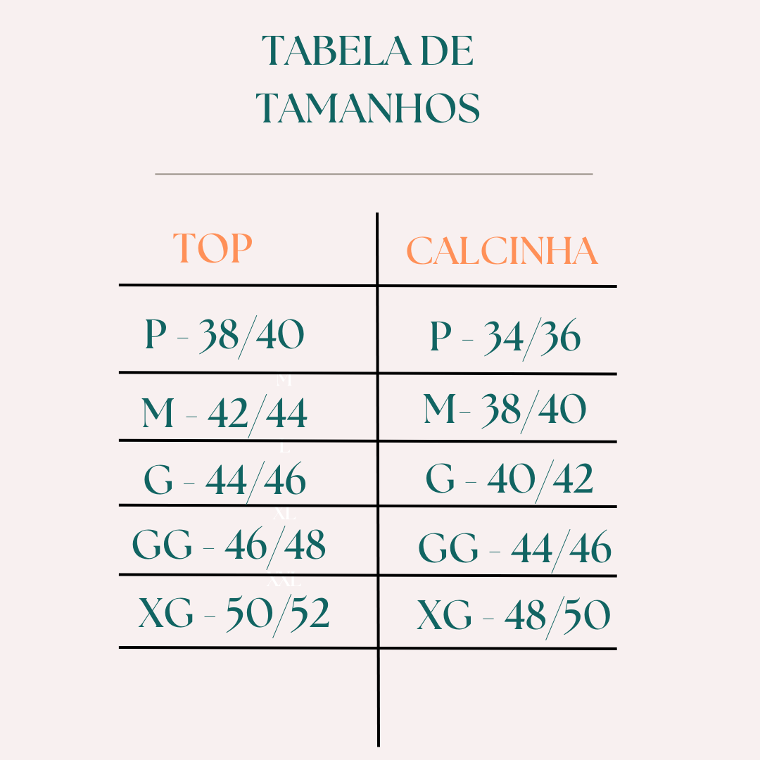 Nossa tabela foi cuidadosamente desenvolvida para garantir que as peças caiam perfeitamente no seu corpo, valorizando suas curvas com estilo e conforto.